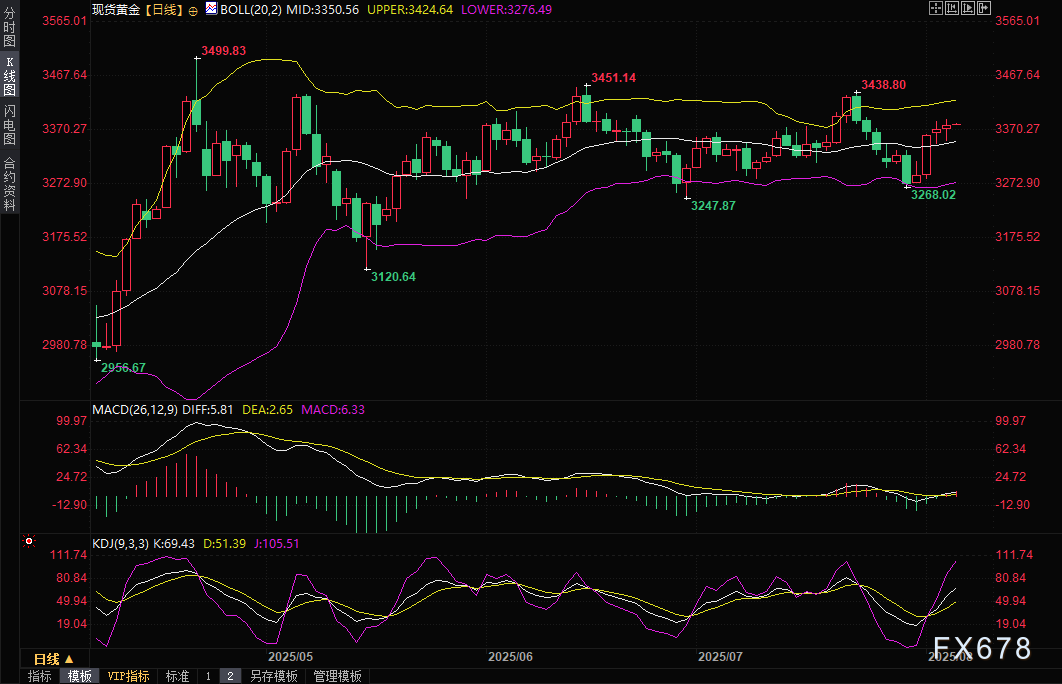 汇通财经APP讯——周三(8月6日)亚市早盘,现货黄金窄幅震荡,目前交投于3382.02美元/盎司附近。金价周二延续涨势,一度触及近两周高点3390.32美元/盎司,收报3380.65美元,为连续四个交易日上涨,展现出强劲的上涨动能。这波涨势不仅受到美国降息预期升温的推动杠杆炒股网,还受到特朗普政府关税政策和美联储人事变动的影响。从贸易逆差大幅收窄到服务业活动趋于停滞,再到美联储关键任命的悬而未决,黄金作为避险资产的吸引力正在显著增强。